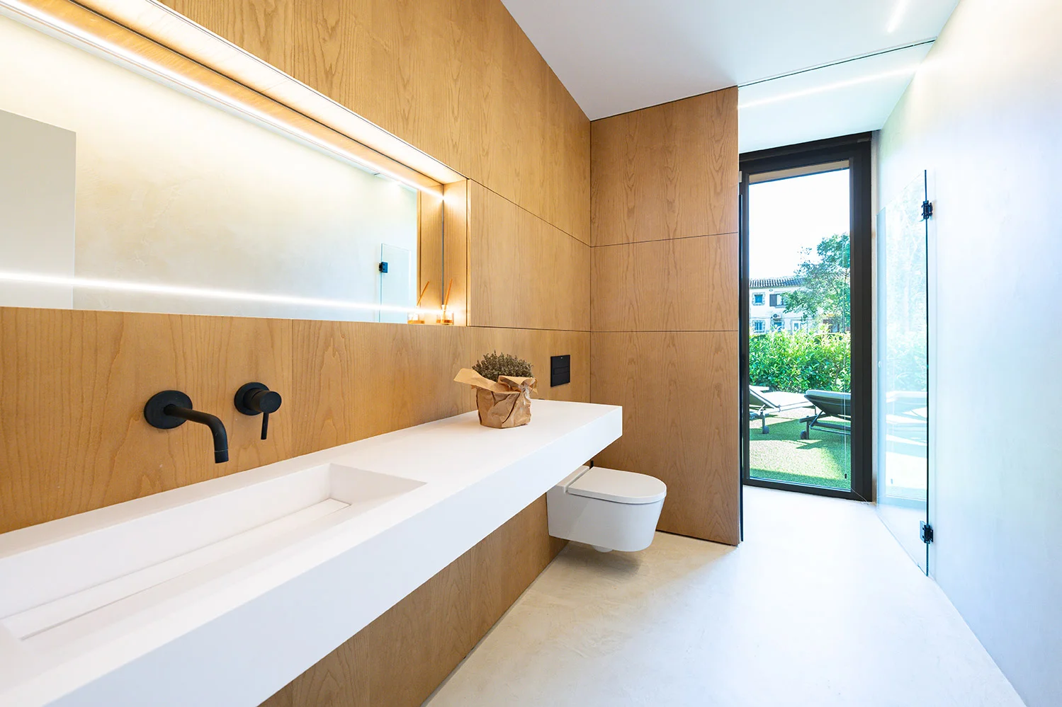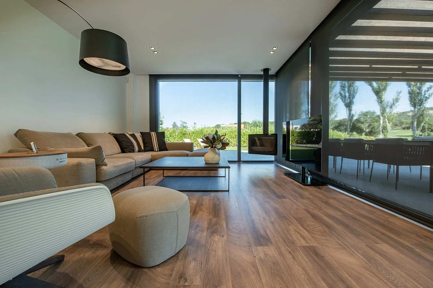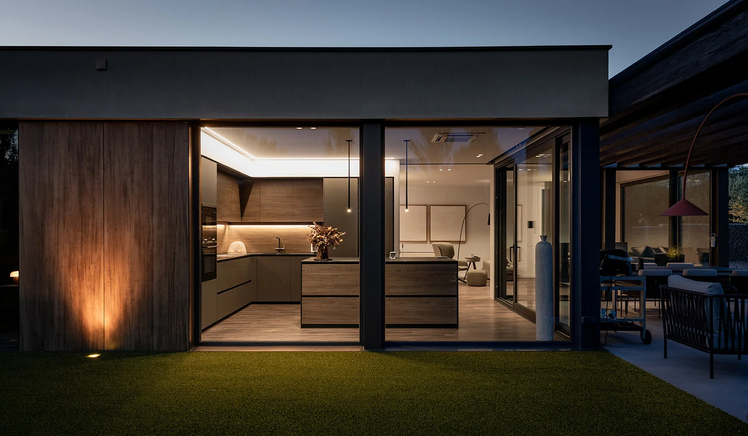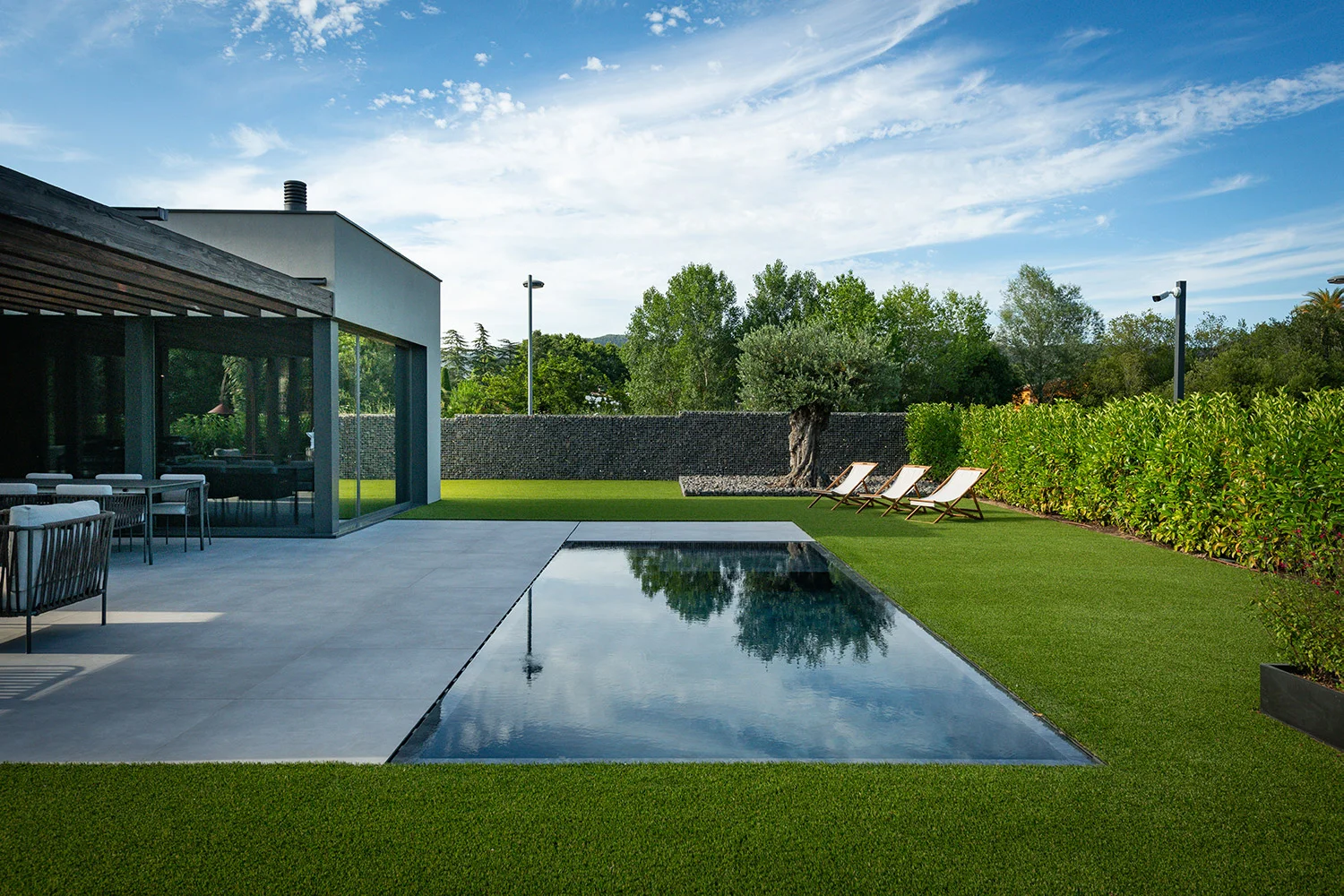 El diseño de la casa está formado por una amplia vivienda de dos módulos que generan las zonas de día y de noche y un módulo posterior en utilidad de trastero en la parte posterior. Presenta una zona de día (salón-cocina-comedor) con una zona acristalada muy generosa que proporcionan confort muy elevado para la vida del día a día. El diseño final se ve cumplimentada con un jardín extenso, una piscina, una terraza y dos porches que generan una casa muy moderna, atractiva y sobre todo muy funcional.